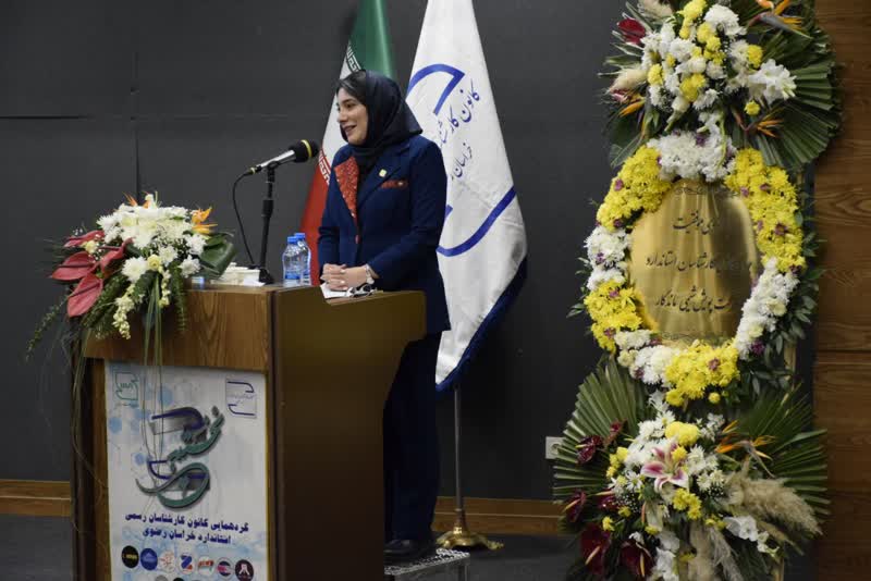 بیانیه پایانی نخستین گردهمایی کانون کارشناسان رسمی استاندارد استان خراسان رضوی توسط خانم مهندس صرافان رئیس هیئت مدیره کانون کارشناسان استاندارد قرائت شد